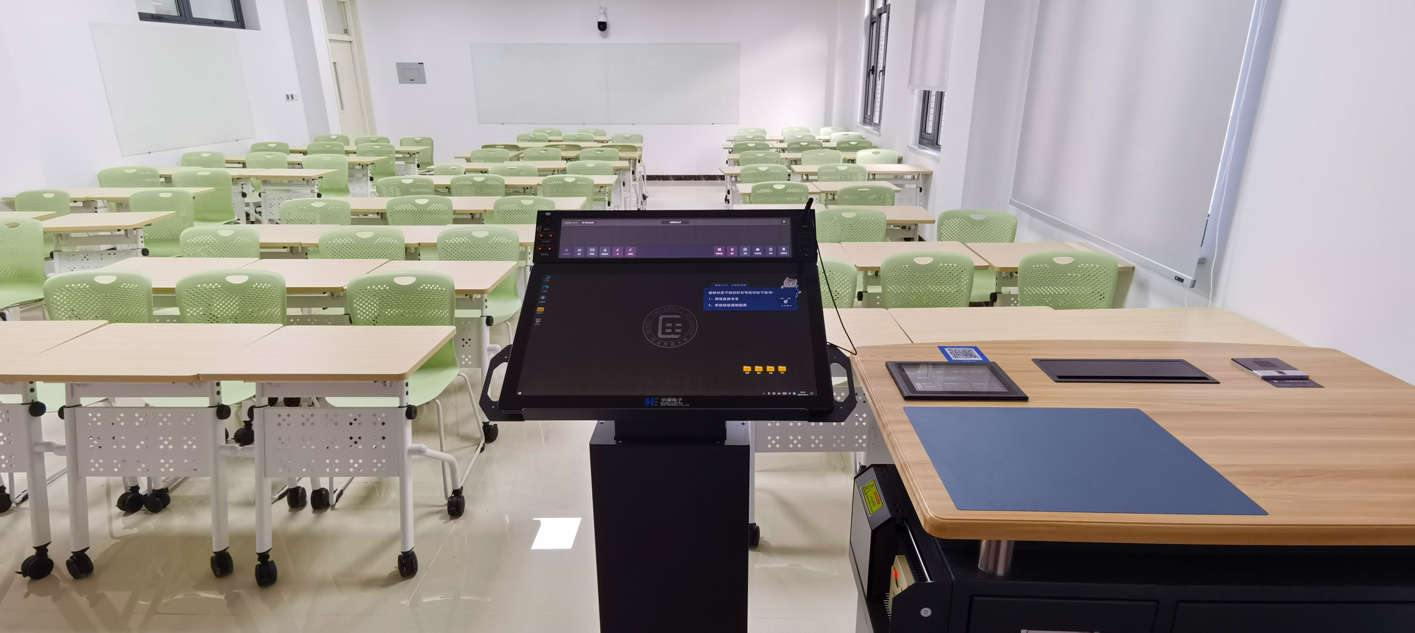 目前,在中央民族大學(xué)新校區(qū)建設(shè)各類型智慧教室112間,其中基礎(chǔ)型智慧教室84間,拓展型智慧教室22間、高級(jí)型智慧教室6間。各類教室根據(jù)需要配備Pen-Link智能交互書寫系統(tǒng)、投影儀、LED顯示屏、觸控大屏、智慧黑板等不同多媒體設(shè)備,適應(yīng)不同教學(xué)場(chǎng)景需求。